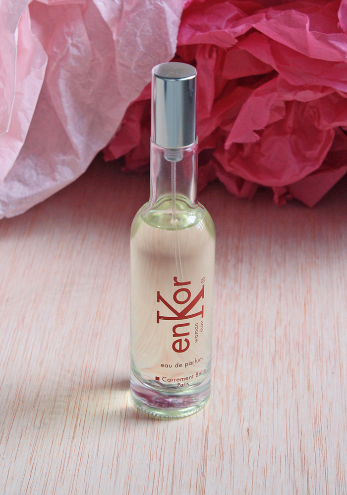 Je vous présentais la semaine dernière mon premier coup de coeur parfum du moment: « Vanille », de Carrement Belle, pour les filles gourmandes qui aiment les odeurs chaudes et régressives. Aujourd’hui, je voulais vous parler comme promis de mon deuxième chouchou: le parfum « enKor ». Parce que toutes les filles n’aiment pas la vanille et parce que moi-même, j’ai parfois envie de plus de fraîcheur. C’est mon côté boyish! EnKor est un parfum mixte, qu’a adopté avec grand plaisir mon amoureux, et que je lui pique quand je suis d’humeur plus sauvage.