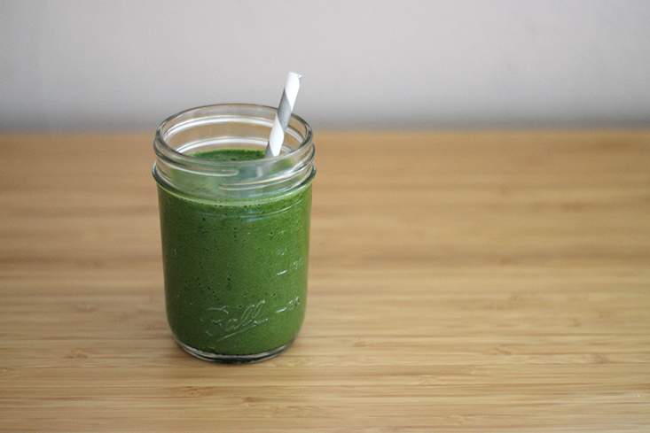 Je suis tombée sur une recette de smoothie très sympa récemment, le « Green Glowing Smoothie » et c’est devenu mon chouchou: eau, épinards frais, salade (ou kale), le jus d’1/2 citron, 2 branches de céleri, 1 banane, 1 poire, 1 pomme. Tu en as pour la journée mais c’est super bon :)