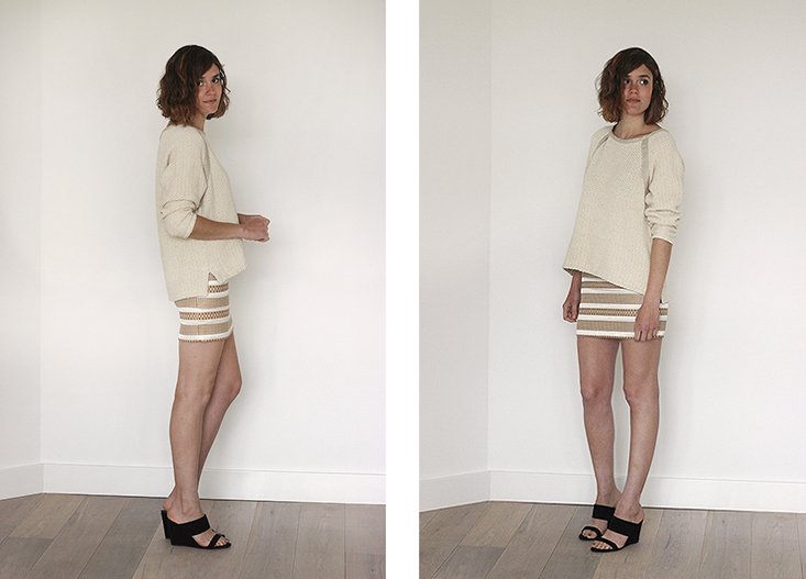 Je la porterais bien tous les jours, sans compter, mais mon petit séjour actuel à Amsterdam (cf Instagram), où les températures sont clairement fraîches, ne me permet pas de sortir aussi peu vêtue. J’ai donc profité du blanc encore immaculé de nos murs pour prendre quelques photos en intérieur; une fois n’est pas coutume! J’espère, malgré la simplicité du cadre, avoir fait honneur à ces deux pièces qui entrent directement dans mes favoris de la saison.