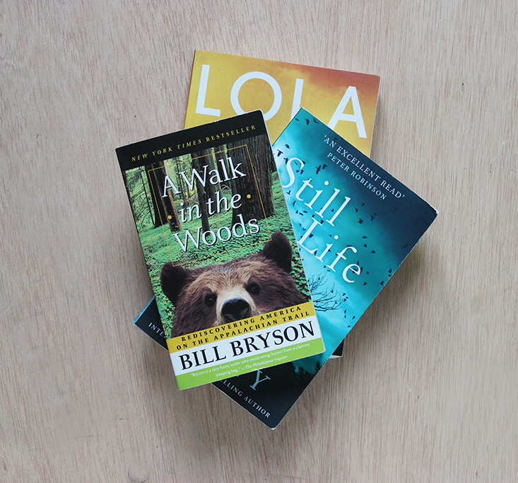Au programme cette fois-ci, trois livres en anglais: un roman policier au coeur d’un petit village québécois, un récit de randonnée sur l’Appalachian Trail, et une romance légère assez addictive.