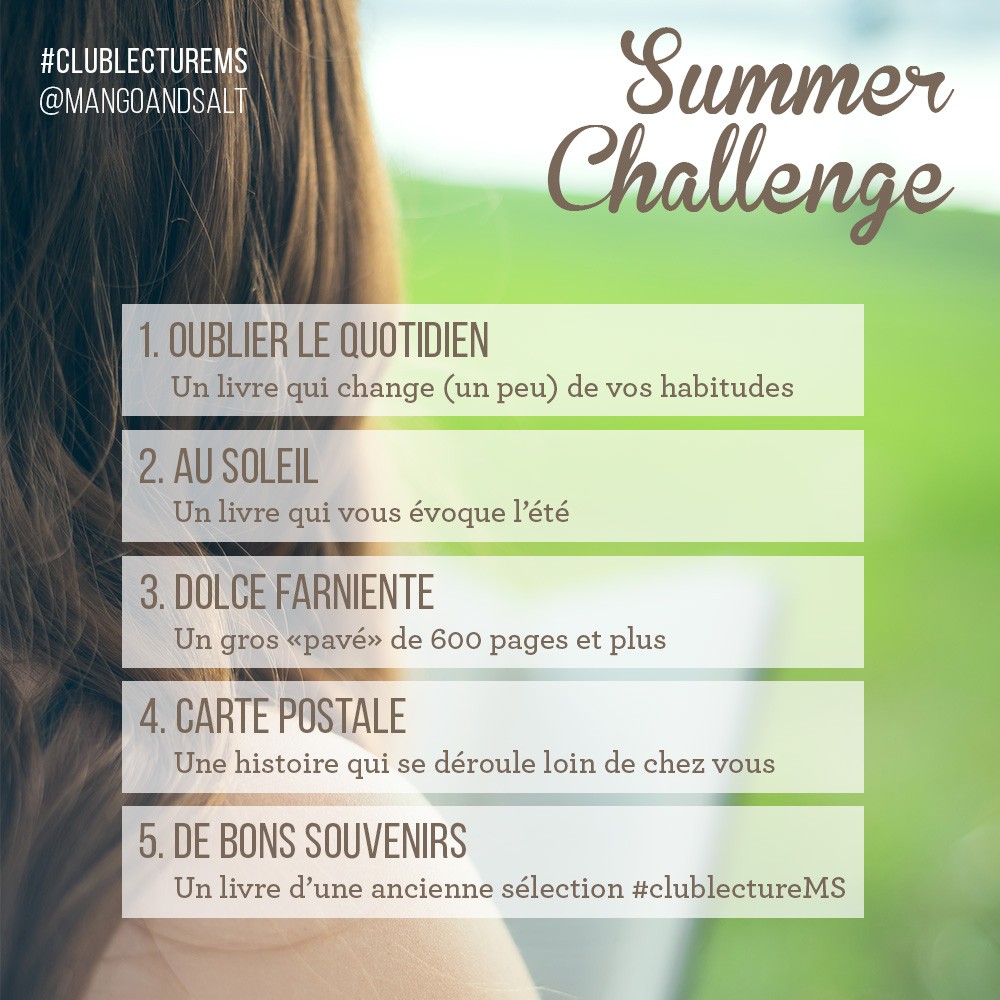 Pour sa 10ème édition, le #clublectureMS passe à l’heure d’été ! Point de votes ni de titre imposé cette fois-ci: je vous propose un défi lecture, le « Summer Challenge », qui devrait permettre à tout le monde de faire de belles découvertes tout en s’amusant un peu.