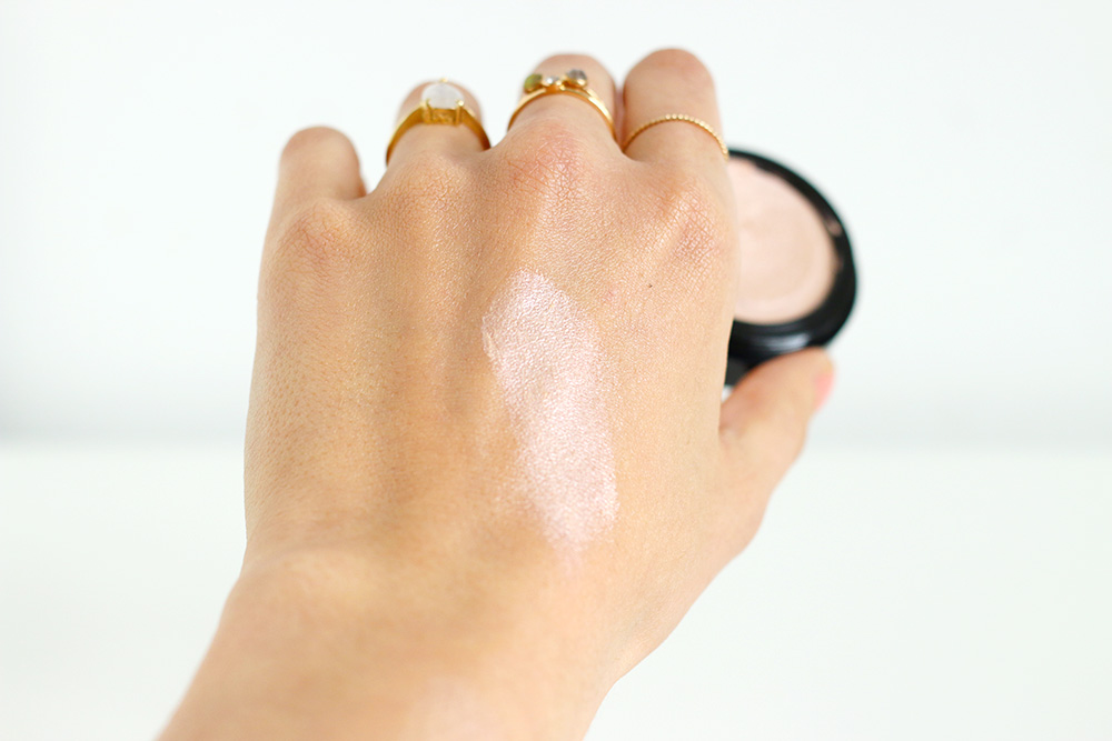Ce fard crème est un champagne-doré clair aux reflets blancs nacrés. Il s’agit de l’un des petits pots RMS Beauty que j’ai le plus creusés, puisqu’il me permet de faire mon indispensable touche lumière au coin des yeux !