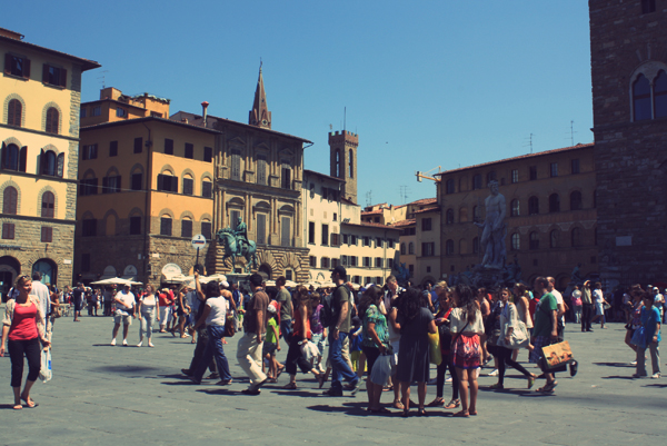 La majestueuse Florence couleur d’ocre, la tranquilité de l’Arno, et (malheureusement) la floppée de visiteurs qui animaient les rues de leur excitation et de leurs cris…