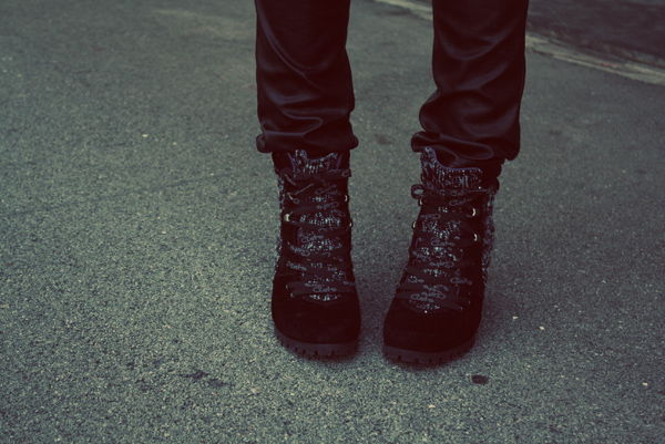 Eh bien, moi, je les aime beaucoup, tes chaussures. Et ta tenue est très bien, avec une mention spéciale pour le pull, sublime. Rock mais confortable, ça se voit et ça donne envie ! :)