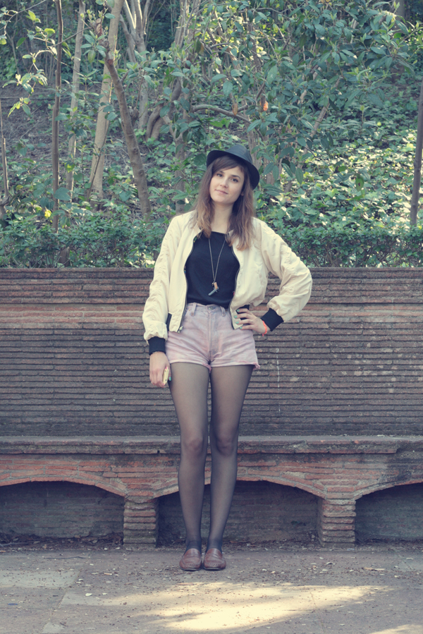 Pull Pimkie – Short Levi’s vintage teint à la main – Veste H&M Fashion Against AIDS – Mocassins Clif Paris – Chapeau Headict (cadeau) – Collier Kiss Me Zombie (cadeau suite au concours)