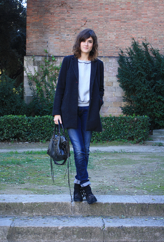 Manteau Zara 2011 – Sweat COS – Jean Levi’s Curve ID – Bottines Reqins 2011 – Boucles d’oreilles Inca Kiss Me Zombie (la page FB ici) – Sac City Balenciaga