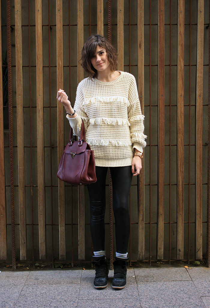 Moi aussi j’ai eu ma période leggings que je portais avec de gros gros pull ou de long gilet en grosse maille avec sneackers ou bobottes !