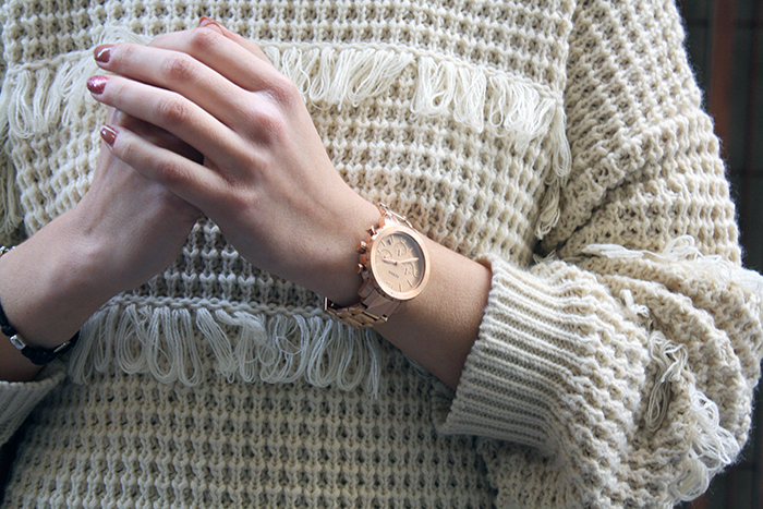 Pull Dorothy Perkins (dispo en noir sur le site) – Leggings OASAP (offerts, vus ici) – Baskets Fashion Pills (il y a les mêmes sur ebay) – Sac Bimba & Lola – Montre Fossil