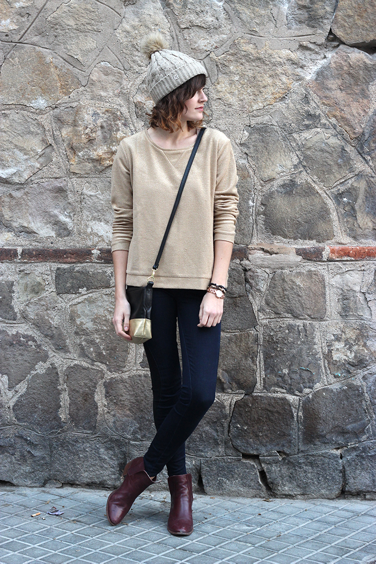 look-touches-dorees5Sweat Bizzbee (plus dispo sur le site, à voir en boutiques) – Jean Fusion Salsa – Bottines Scarosso – Bonnet Blue MelonSac, bracelet et montre Fossil // J’ai reçu tous ces articles en cadeau