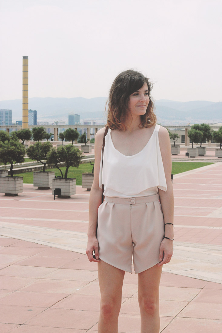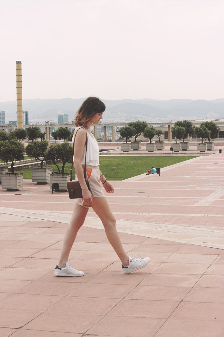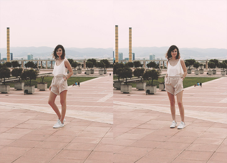 Je trouve en tous cas cette tenue particulièrement mignonne, actuelle tout en sortant des sentiers battus. Et quoi de mieux pour la prendre en photo que la zone olympique qui couronne la colline de Montjuïc, un petit gymnasium paradise sans aucun doute!