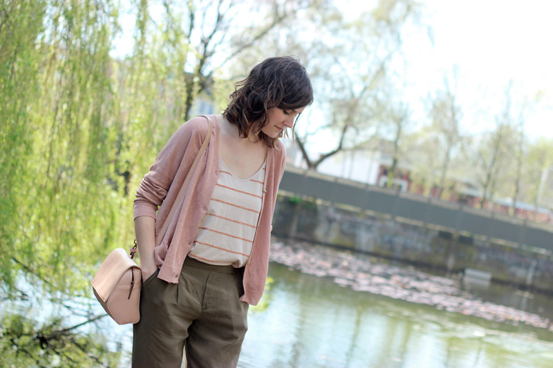 Je te trouve très jolie dans ces tons pastels, qui changent des tons habituels plus neutres (et que j’aime tout autant). Ce look s’accorde bien avec la saison, et les arbres en fleurs :)