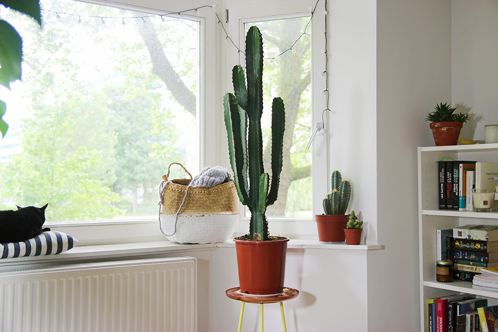Le fait de rempoter dans un pot plus grand s’est également avéré être une excellente technique d’une part pour maintenir le cactus en bonne santé et d’autre part pour le rendre plus dense. Je trouve que le cactus se marie bien avec tous les styles de décoration, il amène une petite touche sobre mais atypique que ça soit dans une pièce chargée ou minimaliste.