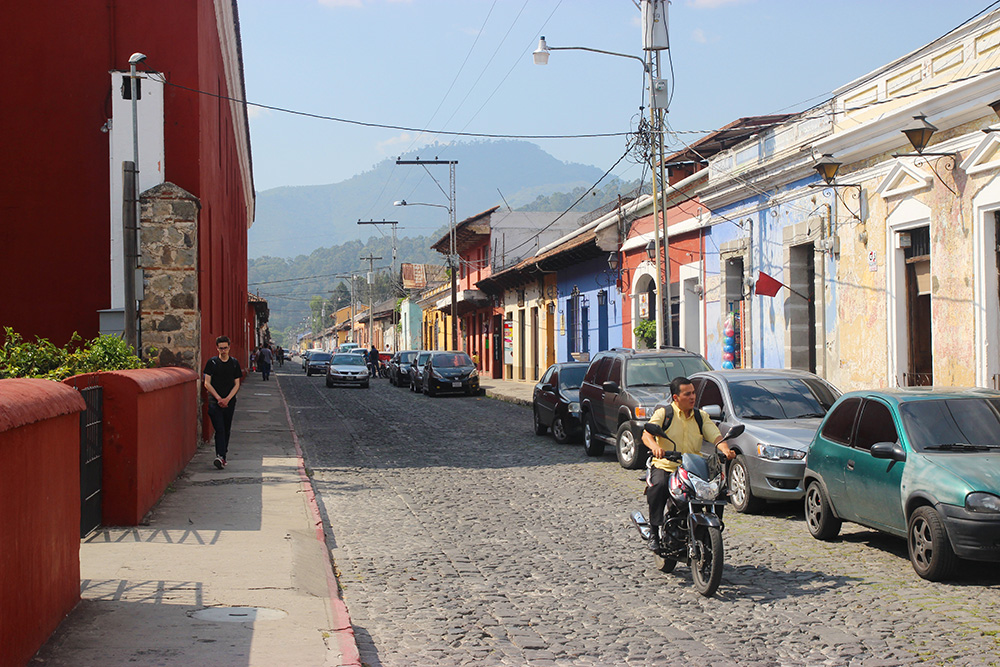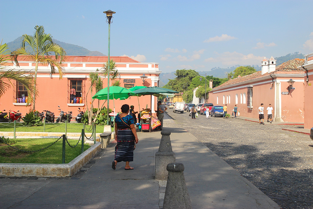 J’ai aussi aimé les contrastes paysagers d’Antigua. De magnifiques églises de style baroque datant de l’époque coloniale s’élevaient, grandioses, dans un quadrillage de maisonnettes basses, simples, parfois légèrement abandonnées. Quelques ruines, et la présence de l’immense volcan Acatenango au fond du paysage, finissaient de conférer un air de grandeur solennelle à cette bourgade autrement parfaitement adorable.