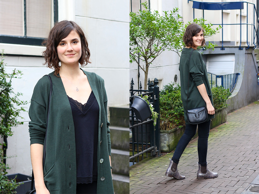 J’aime beaucoup cette tenue, et cette couleur te va très bien :) J’aime énormément le vert sapin (alors que le vert d’habitude bof) pour mes pulls d’hiver et je trouve que c’est une couleur qui me va bien ;-) Moi aussi j’ai remarqué que mes goûts changeaient un peu avec l’âge, moi qui suis une inconditionnelle des unis (bleu, gris, bordeaux, moutarde, camel…), j’achète de plus en plus de tops imprimés récemment ;)