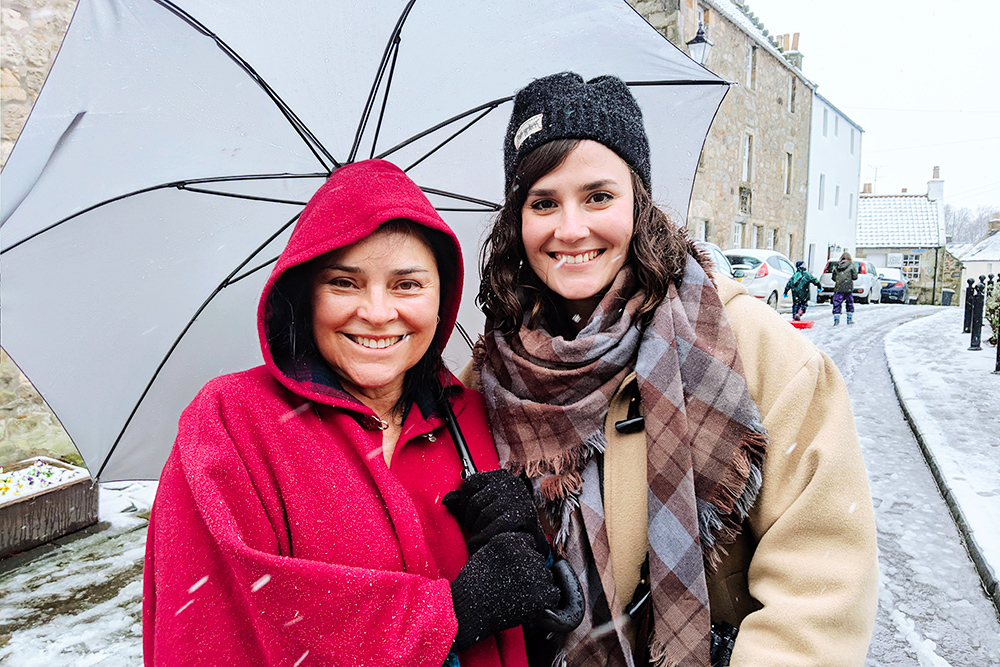 Après avoir récupéré Diana et son mari Doug dans notre minibus, nous avons profité d’une petite pause brunch chez Orocco Pier, qui offre une très belle vue sur les ponts du South Queensferry, avant de partir en direction du Fife pour deux visites de lieux cultes de la série.