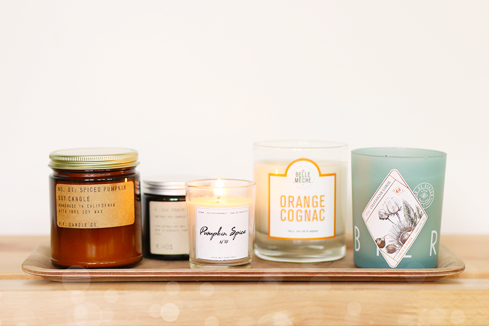 Du côté des bougies végétales de qualité, le choix est immense, mais j’ai quelques références chouchoutes à partager: certaines d’entre elles m’évoquent tout particulièrement l’atmosphère des forêts d’automne (Sous Bois et Bois Fumé de La Belle Mèche, Amber & Moss de PF Candle Co), d’autres celle de lieux réconfortants (Teakwood & Tobacco de PF Candle Co, Bonne Mère de Lou Candeloun) ou encore les gourmandises sucrées de la saison (Orange Cognac et Tabac Miellé de La Belle Mèche, Irish Whiskey et Spiced Pumpkin de PF Candle Co, Latte Noisette et Marron Glacé de Upper East Seine, Châtaigne Corse de Kerzon).